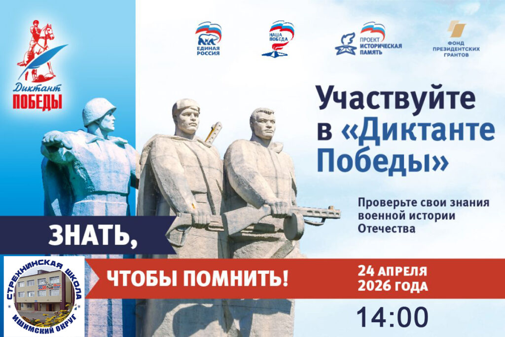 24 апреля 2026 года, в пятницу, в 14.00 (время местное) состоится Международный исторический диктант на тему событий Второй мировой войны – «Диктант Победы» (далее – Диктант), инициированный ВПП «Единая Россия» совместно с Российским историческим обществом, Российским военно-историческим обществом, ВОД «Волонтеры Победы», Россотрудничеством, ООО «Российский союз ветеранов» и Рособрнадзором, Фондом стратегических инициатив Музея Победы.
