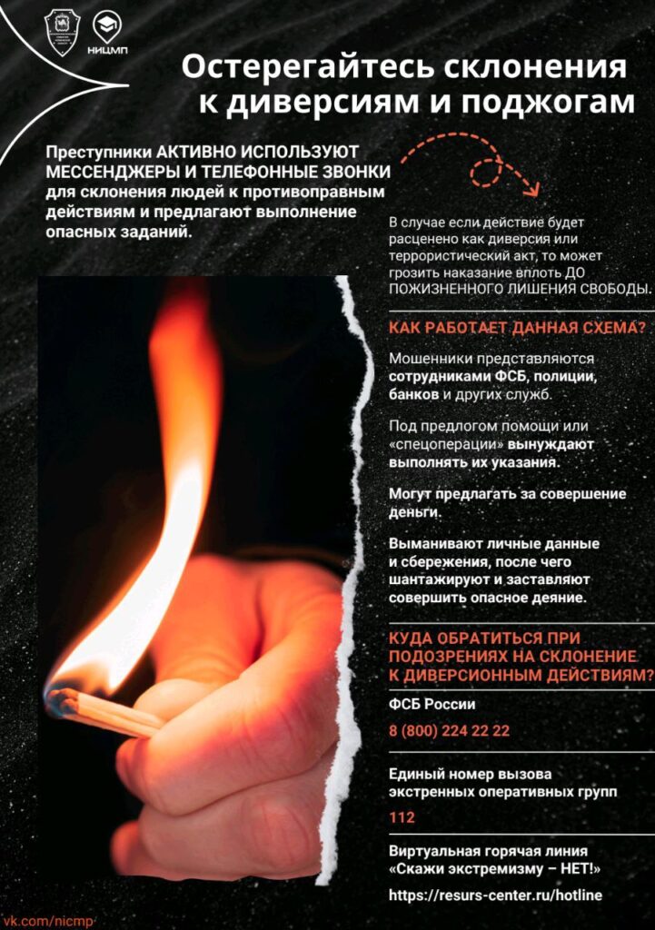 Остерегайтесь склонения к диверсиям и поджогам
